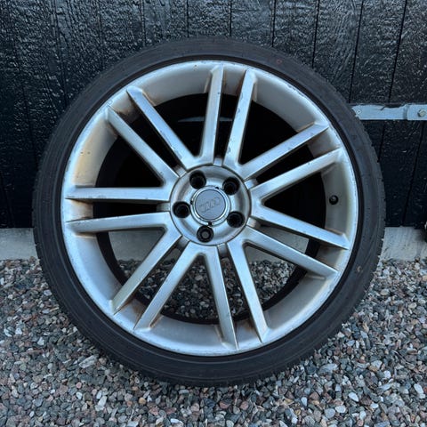 Alufælge, 20", andet mærke, krydsmål 5, ET 15, 0 mønster, fælge med dæk, Originale fælge til Audi A8 2004 - der skal nye dæk til.