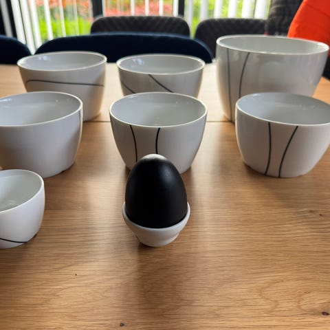 Porcelæn, Skåle, Menu sort kontur, 5 næsten ubrugte skåle fra Menu
