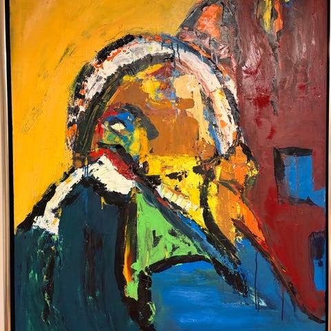 Flot oliemaleri med portrætter/figurer, signeret på bagsiden af kunstneren.