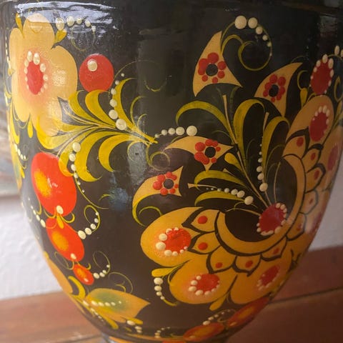 Kinesisk cloissone æg, Med lille træopsats, det hsr lidt skader i lak emaljen. Se billeder.