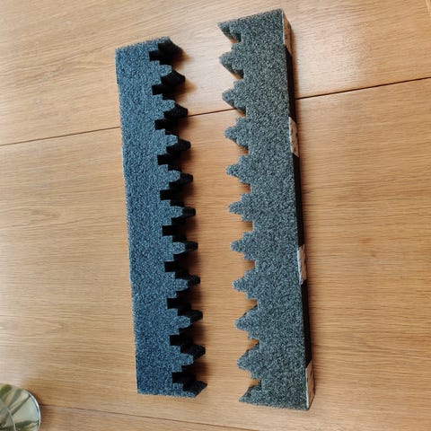 Den er 3D printet i PLA og kan købes i sort eller hvid. 4 dutter i blød plast skridsikre holderen og forhindre ridser mod overfalden den monteres på.