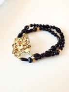 Et tilovers blevet led af et finsk forgyldt armbånd (SE SIDSTE FOTO) er blevet til et nyt design - med sorte forskellige glasperler med forgyldte hematitis perler iblandt.