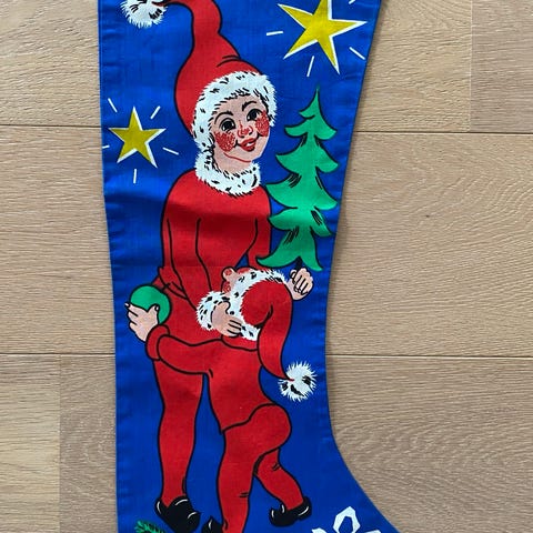Julesok, julestrømpe, Retro, vintage, højde ca 60 cm. Rød på bagsiden.