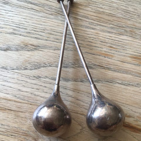 Sølvtøj, Drinkskøler/rørepind, Made in Danmark, 2 stk drinkskølere/rørepind i plet sølv