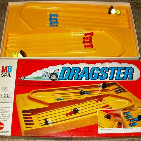 Meget sjælden udgave med 6 metal/bly-biler, inkl. den eftertragtede tankvogn, som kun findes i de ældste Drechsler-spil.