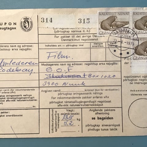 Grønland, stemplet, Breve/postkort