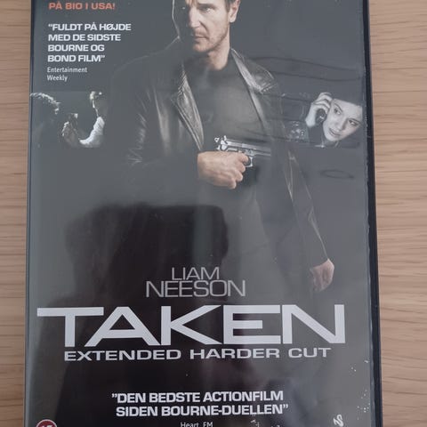 Taken, instruktør Pierre Morel, DVD, action, Jeg ved ikke hvem du er, men hvis du ikke lader min datter gå, vil jeg finde dig og dræbe dig! Det er den tidligere CIA-agent Bryan Mills telefonbesked til lederen af den bande i Paris, der kidnapper hans datter for at tvinge hende ud i stofmisbrug og prostitution.