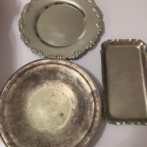 Sølvfad sølvskål, Sølv, Fint sølvskål med bølget 8-kantet blondekant og på 3 kuglefødder.