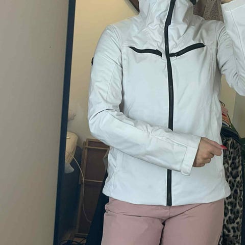 Skijakke, str. 36, Peak performance, Blå, Næsten som ny, Brugt én sæson. Jakken er ikke vasket, så ved ikke om det hvide kan gå af (se billede). Np 3700
