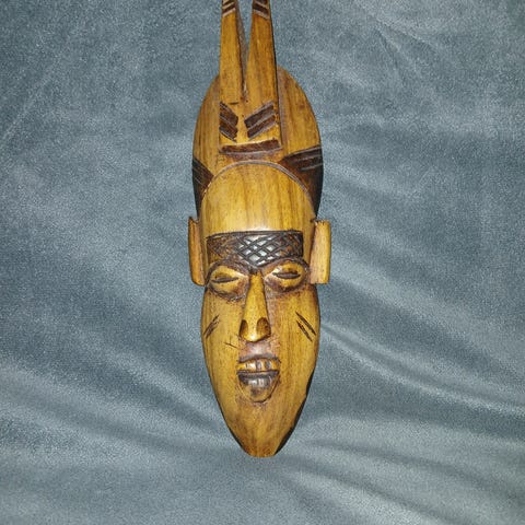 pas-maske, 19 cm håndskåret træmaske fra Senoufou stammen, Elfenbenskysten..