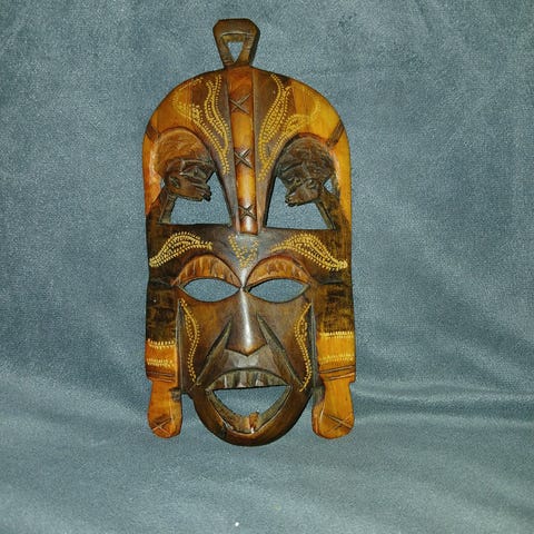Flot maske i sort-brune, rødlige og lys-brune toner.