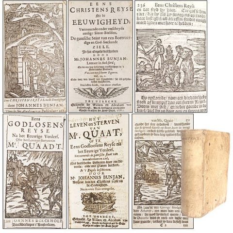 Byd! Pillegrimens Vandring, John Bunyan, genre: eventyr, Antikvarisk, trykt i Gøteborg 1894, ekstremt velholdt læderindbundet med smukke illustrationer i kobberstik.