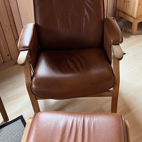 Læderlænestol, læder, Nordic.C “Monteret plus lænestol + skammel, KOM MED ET BUD
