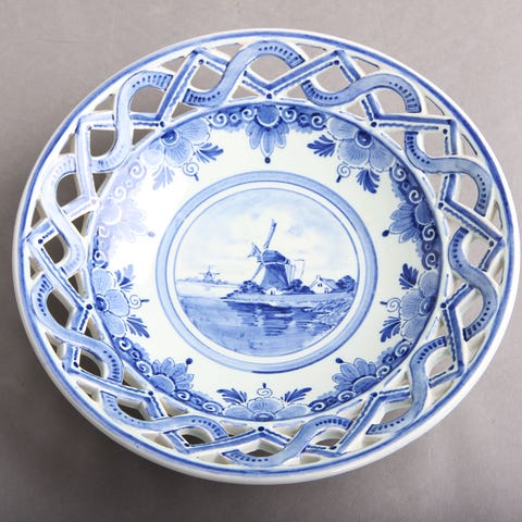 Fajance, Fad, Delfts, 39 cm. stort fad, Delfts made in Holland, Royal Sphinx, motiv med hus og møller, ingen skår eller skrammer sælges for kr. 450.
