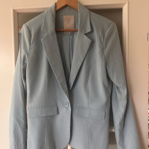 Blazer, str. 36, Gestuz, Blå, Viscose, Næsten som ny, Smuk mørkeblå blazer fra Gestuz. Den er en åbenstående model med revers og to lommer foran. Ren viscose. Modellen i den vinrøde jakke er medtaget for at vise hvordan jakken sidder på.