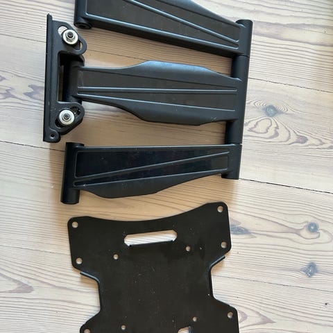 Tv ophæng hjørne, VO Design, God, Special designet hjørne tv bord med underhylde og 4x230V el-udtag til surround eller andet. LxDxH: 110x20x25cm. Ophænget skrues fast med 4 eller 6 små skruer ind i væggen.