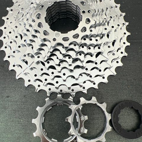 De tre mindste tandhjul er skiftet og har ikke været i brug og det er dem jeg primært har slidt på.