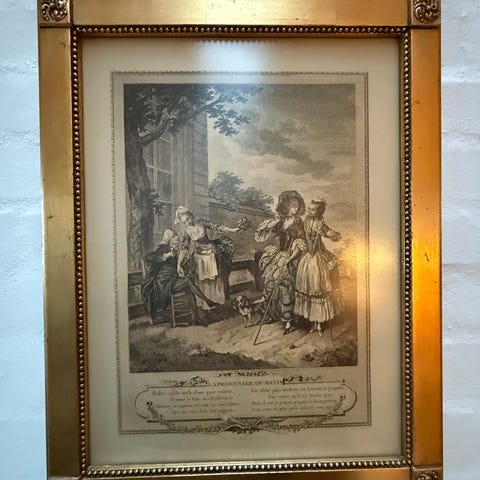 Monteret i smuk guldramme der måler b. 32 cm. h. 25 cm.