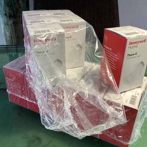 Termostat, Honeywell, To styk Thera-6 termostater, str. M30x1.5, sælges samlet til kr. 80 eller kr. 50 pr. styk, har været monteret men ikke anvendt.