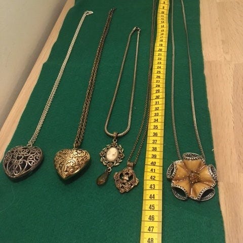 Flotte bronze halskæder og et sæt øreclips, der kan passe til alle halssmykkerne.