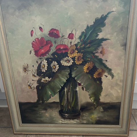 Oliemaleri, motiv: Blomster/Have, b: 83 h: 63, Super flot.