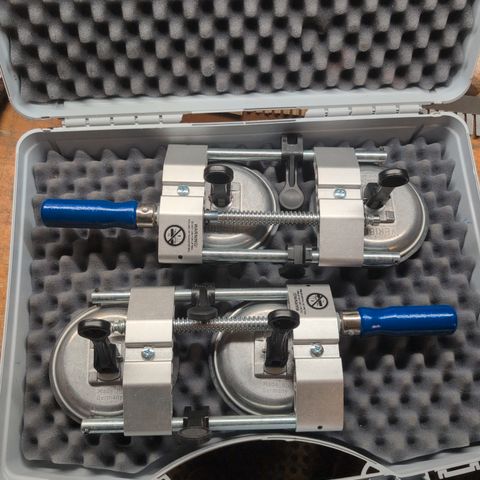 De 2 andre, som er lidt mindre kraftige og måler i længde total 300 mm og hver sugekop er Ø 100 mm - sælges for til sammen 150 kr.