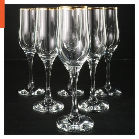 Glas, 2 guld champagneglas, 17 x 4 cm