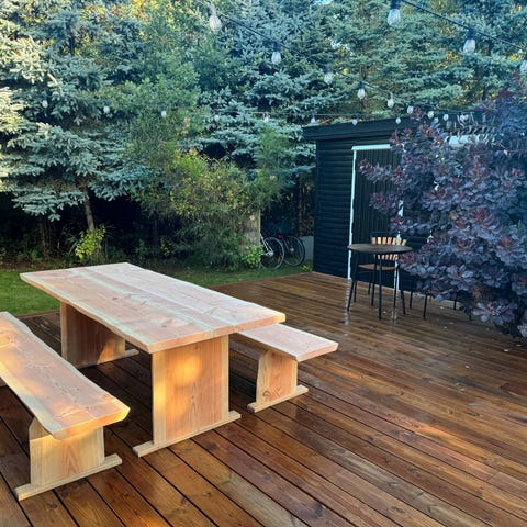 Bordbænkesæt, Ædeltræ, Stor bord med 4 stk. positionsstole
