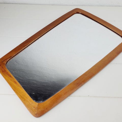 Vægspejl, b: 80 h: 90, Flot retro/ antik spejl, i teaktræ , ingen ord kan beskrive den ,stå sammen med symaskine bord i teak træ også ,i entré, skrive ved interesse for mere billeder og info ,,Målerne passer ikketil sende den genem dba , men skrive og vi kan aftale nærmere om forsendelse