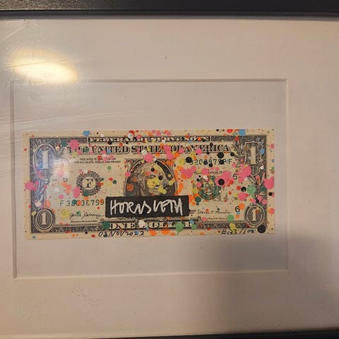 Hornsleth, kunst, dollar, pengeseddel, dansk, signeret, Nummereret, dateret, litografi, maleri, provo, provokation, kbh, art, modern, moderne, limited, edition, 500kr, 1000kr