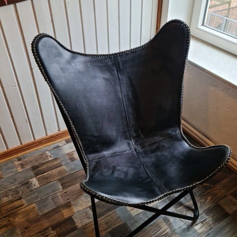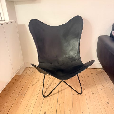 Flagermus stol, Flagermus stol i sort læder, aldrig brugt