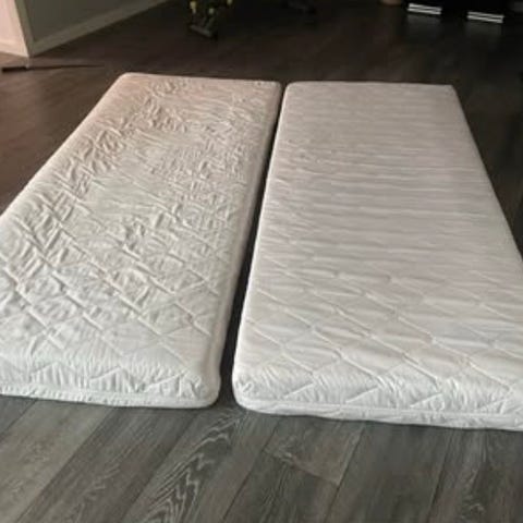 Springmadras, b: 90 l: 200, 2 styks og en madreskile hent i Hundige 2670 for 1200.