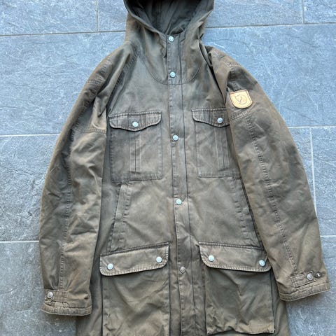 Parkacoat, str. XXL, Fjällräven, 1 Velcro var ved at gå op i limningen, så den er limet med texstillim da en Alm syning ville kunne ses forfra. Prisen er sat derefter