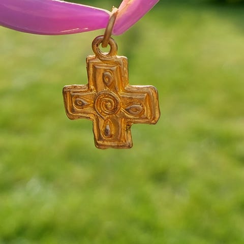 Vedhæng, andet materiale, En lidt anderledes hjertemedaljon i gyldent metal med kæde. Denne er ikke til at have et billede men hjertet er hult og kan skilles så man kan ligge en lille ting ind - som kan ses gennem gitteret f.eks barnets første tand. Hjertet måler 3x3cm . Kæden er ca 76cm lang men konstrueret så man kan lukke den så den bliver kortere.