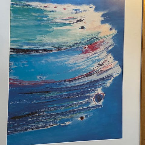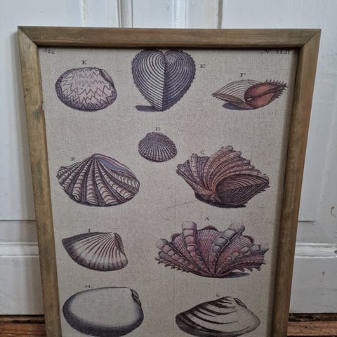 Art >Print, motiv: blåmuslinger, b: 50 h: 70, blåmuslinger billede indrammet i mørk kirsebærtræ ramme :)