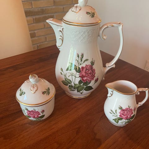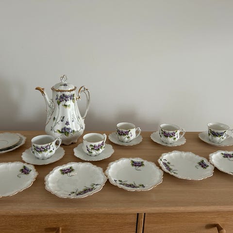 Keramik, Kaffestel , Grøn Mette, 14 kaffe kopper m/underkopper