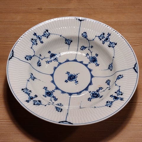 SKØN sjælden antik Royal Copenhagen riflet musselmalet dyb tallerken fra slut 1800-tallet