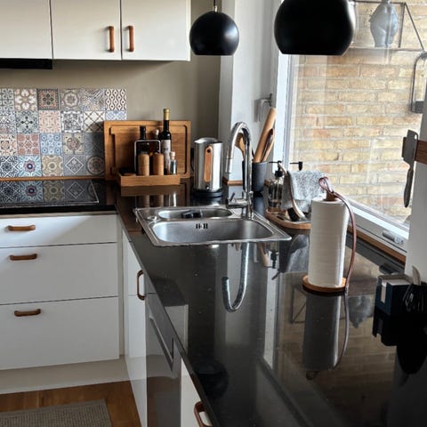 Bordplade, Sort granit Nero Afrika, Hjørneløsning til komfur, 90 grader.