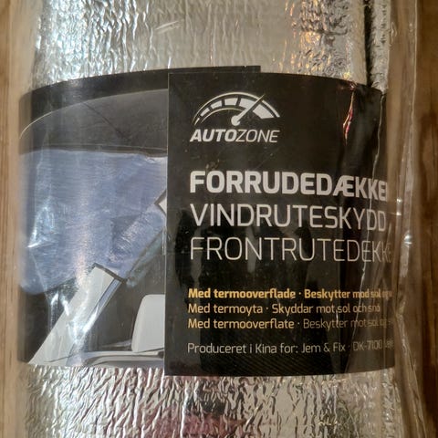 Andet biltilbehør, Termo rudebeskyttelse, ubrugt i original emballage, ingen isskraber om vinteren, nedsætter varmeophobning om sommeren, passer til forruder på alle gængse personbiler, perfekt afdækning med trapezformet tilskæring, enkel og sikker befæstigelse med flapper til fastklemning, af slidstærkt materiale med aluminiumsbelægning og forstærket kant, tåler temperaturer fra -50 til +70 C, kan rulle sammen og har 2 elastiske fikser-stropper, har 2 styk, 1 styk kr. 30, 2 styk kr. 50