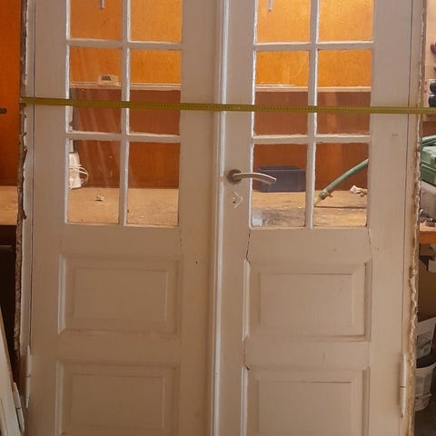 Dobbeltdør, mahogni, b: 1805 h: 2080, Ny produceret døbbeltdør i Maghoni. Udført af lokal dansk snedker Bæk og Madsen.