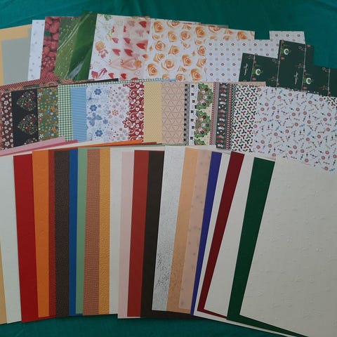 Papir, 66 fine design papir/karton til klip/scrapbooking mv. i gennemsigtig plast boks.