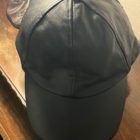 Kasket, Dk-kvalitet, str. 56-57, Sort, Ægte blødt læder, God men brugt, En sjov Retro kasket