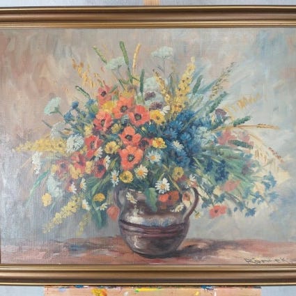 Oliemaleri, Hans Rønnekjær, motiv: Blomster/Have