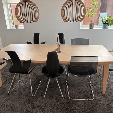 Har stået omkring et Piet Hein Superellipse, og man sidder bare godt både før, under og efter middagen.