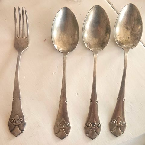 Sølvtøj, Gaffel, Alpacca, 3 stk. gaffel i sølvplet fra Alpacca.