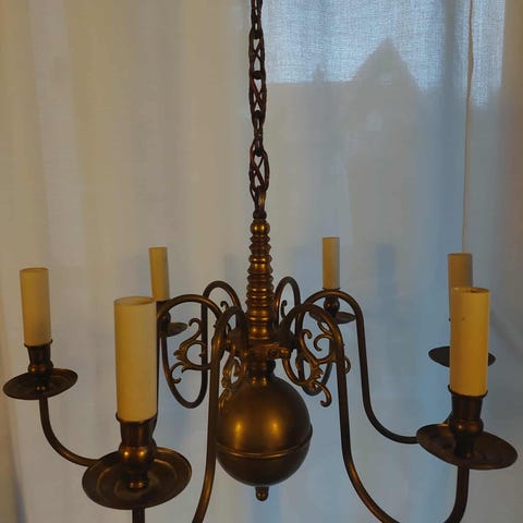 Lysekronens strøm-system har fået en skade, som producenten kan lave for 2500 kr. Jeg er ikke selv interesseret i det, da jeg i mellemtiden har fundet en anden lysekrone. Derfor sælger jeg lysekronen som beset hvorefter den skal repareres.