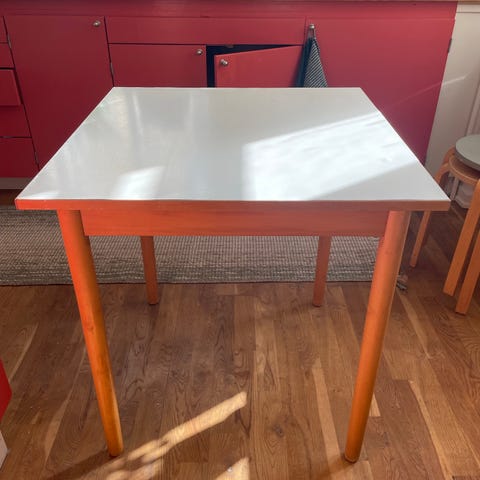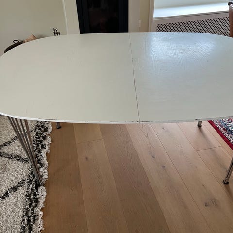 Anden arkitekt, bord, Moderna, Hvidt spisebord, pænt strømlinet og moderne. Bordet har en glasplade og 2 skuffer der kører let og fint i skinner.