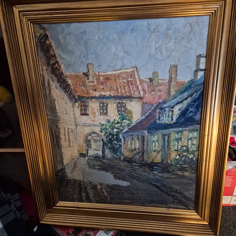 Andet, Flot maleri i guldramme 41 x 31 cm.