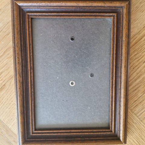 Ældre "guld" ramme i træ. 22,5 x 17,5 cm. Til væg eller bord. Hjem uden dyr og røg. Jeg sender gerne med Fiks færdig - men jeg kan også stå for at købe pakkelabel hvis det passer dig bedst : )