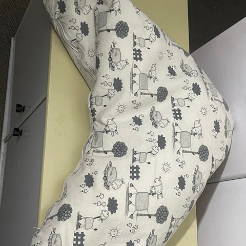 Skøn ammepude, blå- og hvidternet overtræk i bomuld, som kan tages af og vaskes.